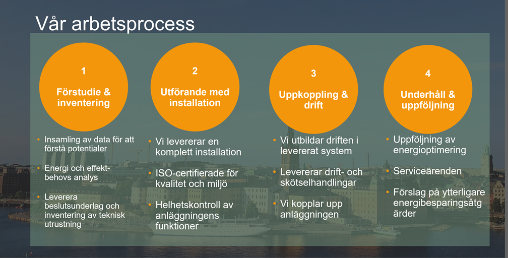 - Vi jämför energianvändningen före och efter energioptimeringen och analyserar resultaten.