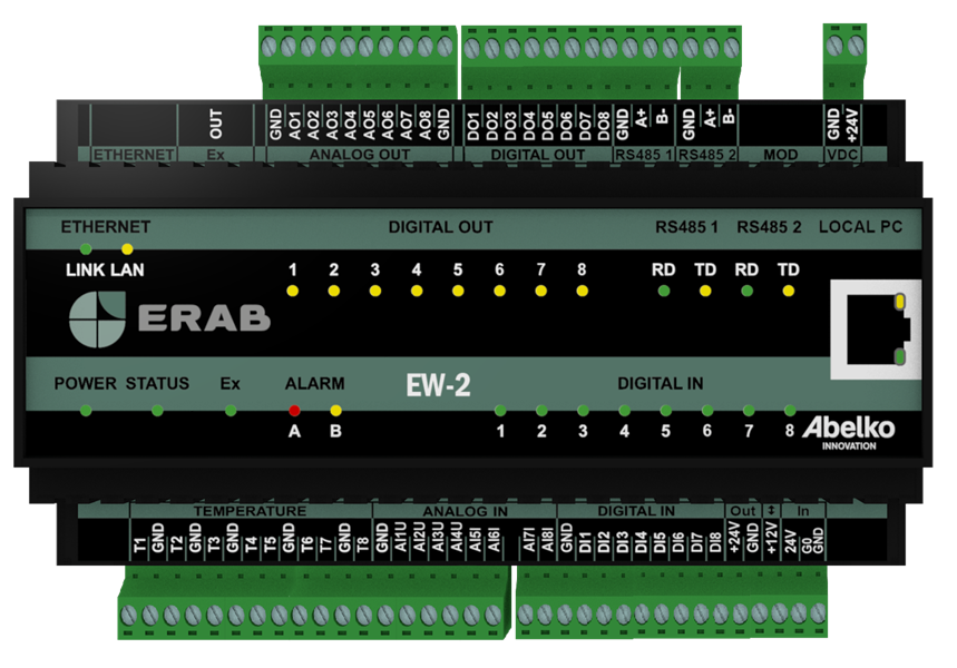 Erab EW-2 är det senaste på marknaden och en direkt ersättare för vår IPX2-DUC. Med bland annat handomkopplare på alla utgångar, webbaserat användargränssnitt, loggning, larmhantering, översiktsbilder och Modbus.