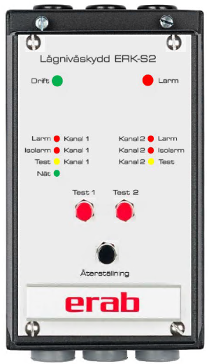 Lågnivåskydd ERK-S”, manöverspänning, elektrodlängd, max